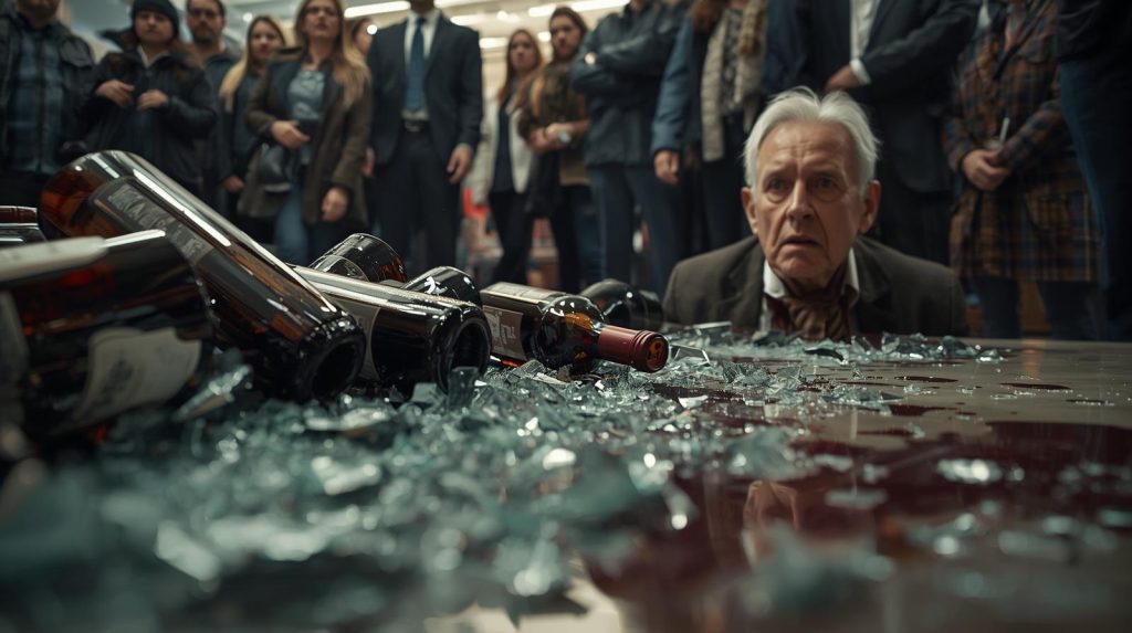 The breaking point came when Charles accidentally tipped over a wine rack full of expensive bottles. The crash echoed through the store, drawing customers and staff into a tense circle of silence. Matt didn’t care who was watching. In front of everyone, he fired Charles on the spot, demanding his apron and keys like he was kicking out a criminal instead of a worker. Charles, shaken and quiet, handed everything over without argument as Matt escorted him outside.