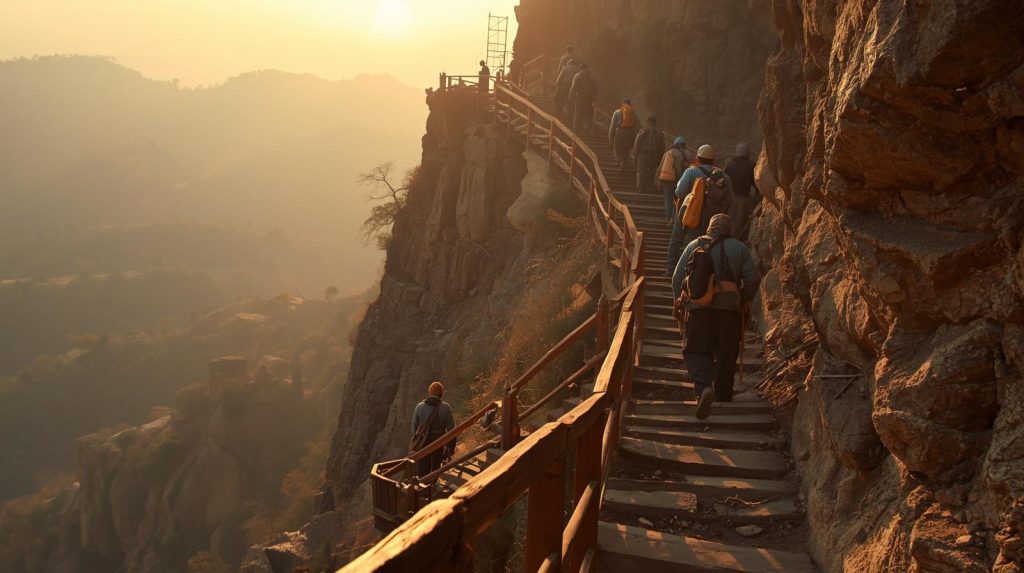 Before any presidential face could emerge, the mountain itself had to be tamed. Roads were carved upward, a small settlement of tool shops and housing appeared at the base, and a 504-step wooden staircase was hammered directly into the mountainside. Massive air compressors powered jackhammers through thousands of feet of pipe. Each morning, men climbed those steps knowing the danger ahead, and yet, against all odds, not a single worker died during the 14-year project.