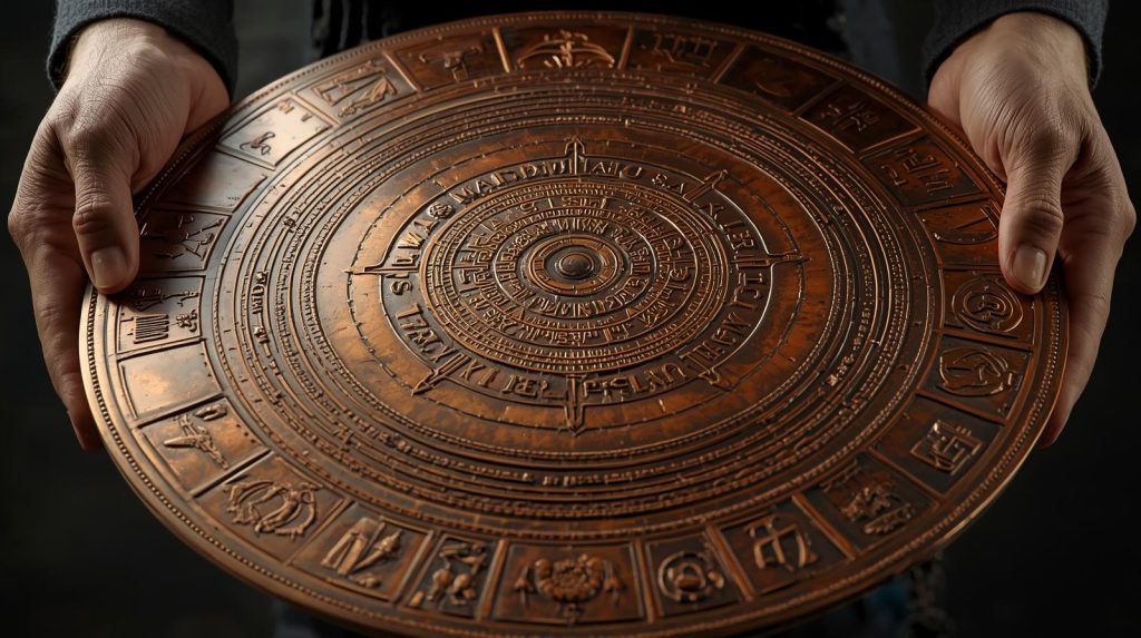 When Father André brushed off the grime and tried to lift it, the weight alone told him this wasn’t a simple decoration. Nearly three feet across, the disc felt engineered rather than decorative, like it had been made to last, survive moisture, and resist time. The surface wasn’t random—its lines and symbols looked structured, like a coded language meant to be read by someone who understood the system behind it.