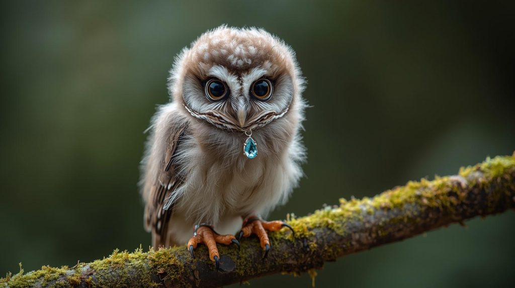 As Sarah looked closer, she noticed something unusual attached to the owl’s leg. A small metal band held a tiny object that sparkled in the sunlight. When the owl shifted its claws, a deep blue gemstone flashed briefly. It looked like a pendant or coin, something far too unusual for a wild bird to carry.