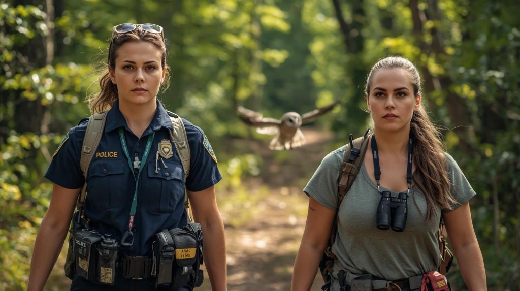 Determined to follow the lead, Sarah and Dr. Mitchell began searching along the trail Robert had planned to hike. The baby owl stayed nearby, sometimes perching on Sarah’s shoulder or fluttering ahead through the trees. As they moved deeper into the forest, they began noticing subtle signs—broken branches, faint footprints, and disturbed leaves.