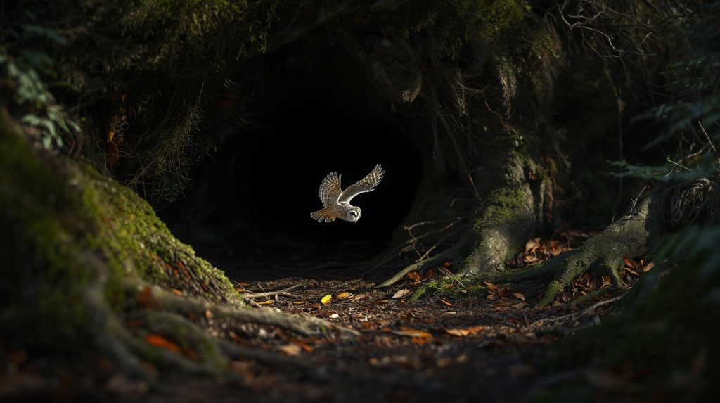 The search grew larger as volunteers and local officials joined the effort. Then suddenly, the owl began acting differently—circling above one particular spot and hooting repeatedly. When rescuers cleared away leaves and debris, they discovered a hidden opening leading into a narrow underground passage.