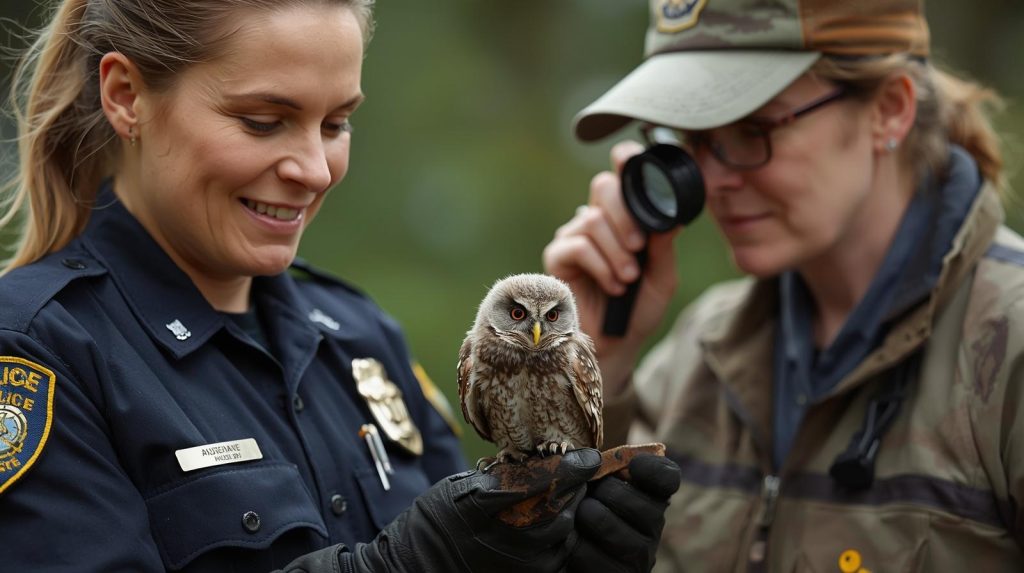 As Sarah stepped out of her patrol car and approached carefully, she expected the bird to fly away. Instead, the owl did something surprising—it hopped toward her while letting out soft little hoots. Curious and cautious, Sarah knelt down and extended her gloved hand. Without hesitation, the tiny owl climbed onto her finger as if it trusted her completely.
