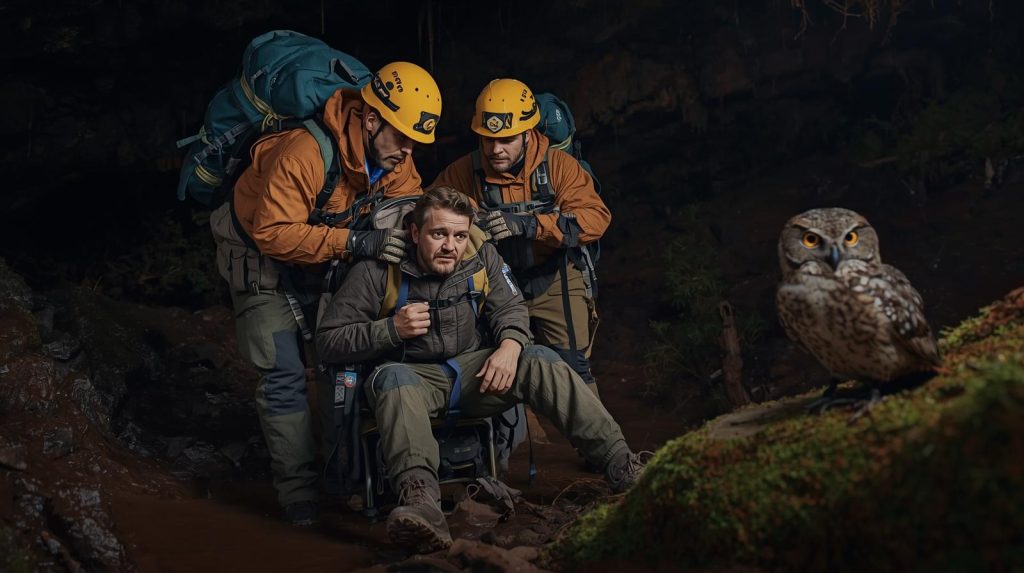 Inside the cave they finally found Robert. Injured and dehydrated after slipping near a dangerous cliff, he had been trapped for days. During that time, the small owl had stayed nearby, keeping him company. In a final act of hope, Robert had attached his pendant to the bird, hoping someone would recognize it and follow the clue. The owl had carried that message straight to the road—and ultimately to the rescue that saved his life.