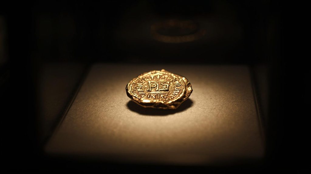 Early one cold morning, Mark was walking along the shoreline when something unusual caught his eye. Half-buried in wet sand was a small gold-colored object that looked like nothing more than trash at first glance. Curious, he crouched down and brushed away the sand with his thumb. Instantly he felt the weight of it. It wasn’t light like cheap jewelry or costume metal. The object was dense and heavy, the kind of weight that makes your hand pause. One side looked smooth, while the other carried a faint imprint nearly erased by time.
