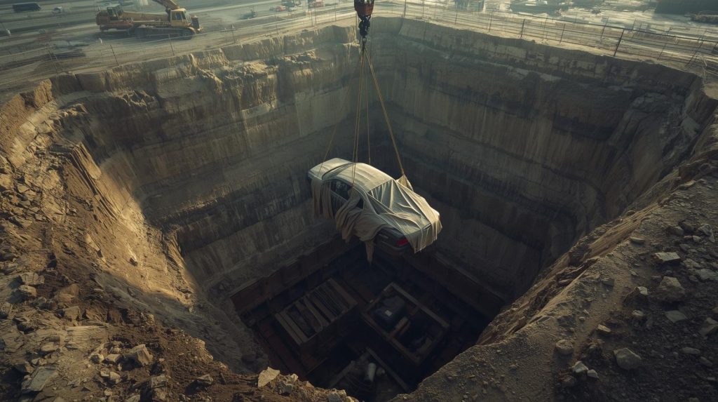 At first, all anyone could see was a grimy sheet being slowly raised from the earth. But as the shape emerged, it became unmistakable—there was a car underneath. The sight confused the crowd more than it satisfied them. Why would the city shut down a major crossing for ten days just to retrieve an old vehicle?