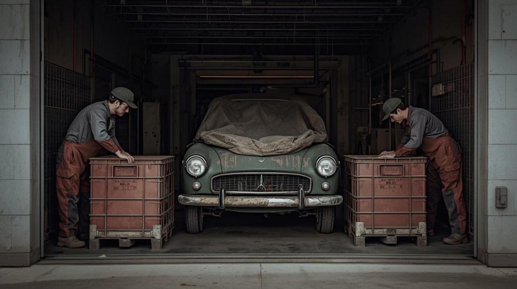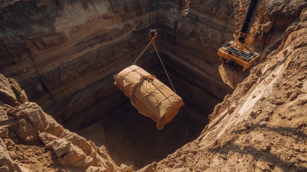 The car was carefully secured onto a truck and transported to a nearby garage under heavy supervision. Soon after, sealed boxes—packed as if designed to survive decades underground—were also lifted from the site. Every crate appeared preserved despite fifty years beneath the soil. Whatever had been buried here had been placed deliberately and protected with extreme care.
