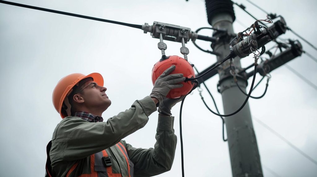 If you ever look up at high-voltage power lines, you may notice large brightly colored balls hanging evenly along the cables. From the ground they might look small, almost like Christmas decorations placed along the wires. However, these objects are actually much larger than they appear—some can reach nearly one meter in diameter. Their bright colors and placement often make people curious, but these balls are far more important than simple decorations.
