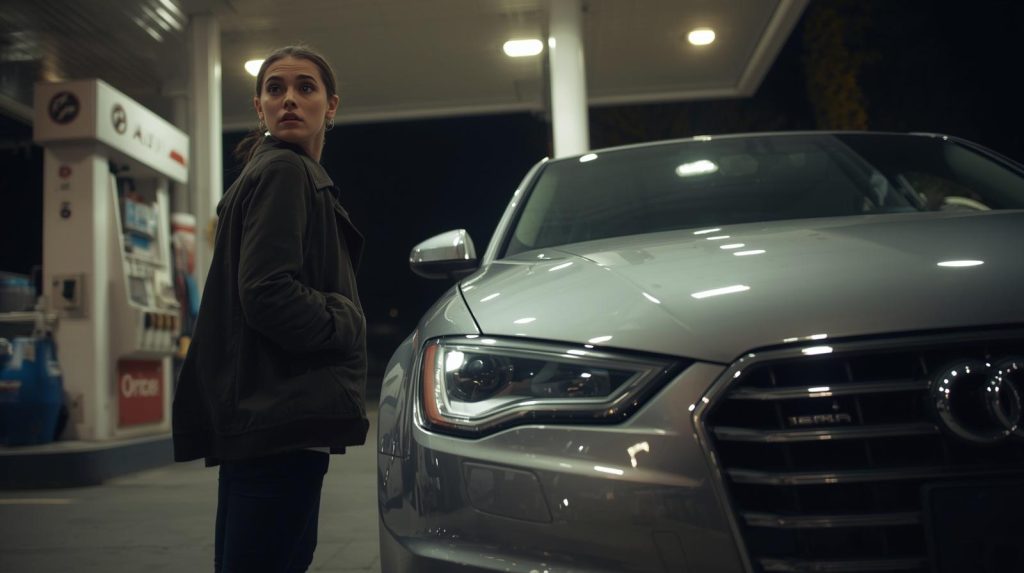 When Patrick arrived, he first noticed two teenagers bothering customers, which seemed to be the main issue. But while speaking with them, his attention shifted to a young woman refueling a sleek Audi. She kept glancing around nervously, tapping her feet and constantly checking the gas pump as if she couldn’t wait to leave. Something about her body language didn’t sit right with Patrick. Even after finishing, she pressed firmly on the trunk of her car several times, as if making sure it stayed shut.