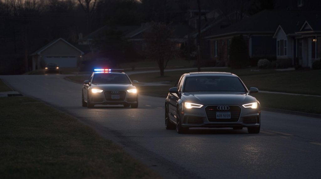 As Patrick closed the distance, he activated the stop signal ordering the driver to pull over. Instead of slowing down, the woman suddenly pressed the accelerator and attempted to escape. The quiet follow turned into a full pursuit. Another officer joined from the opposite lane, boxing the Audi in and forcing the driver to pull over before the situation could escalate into a dangerous high-speed chase.